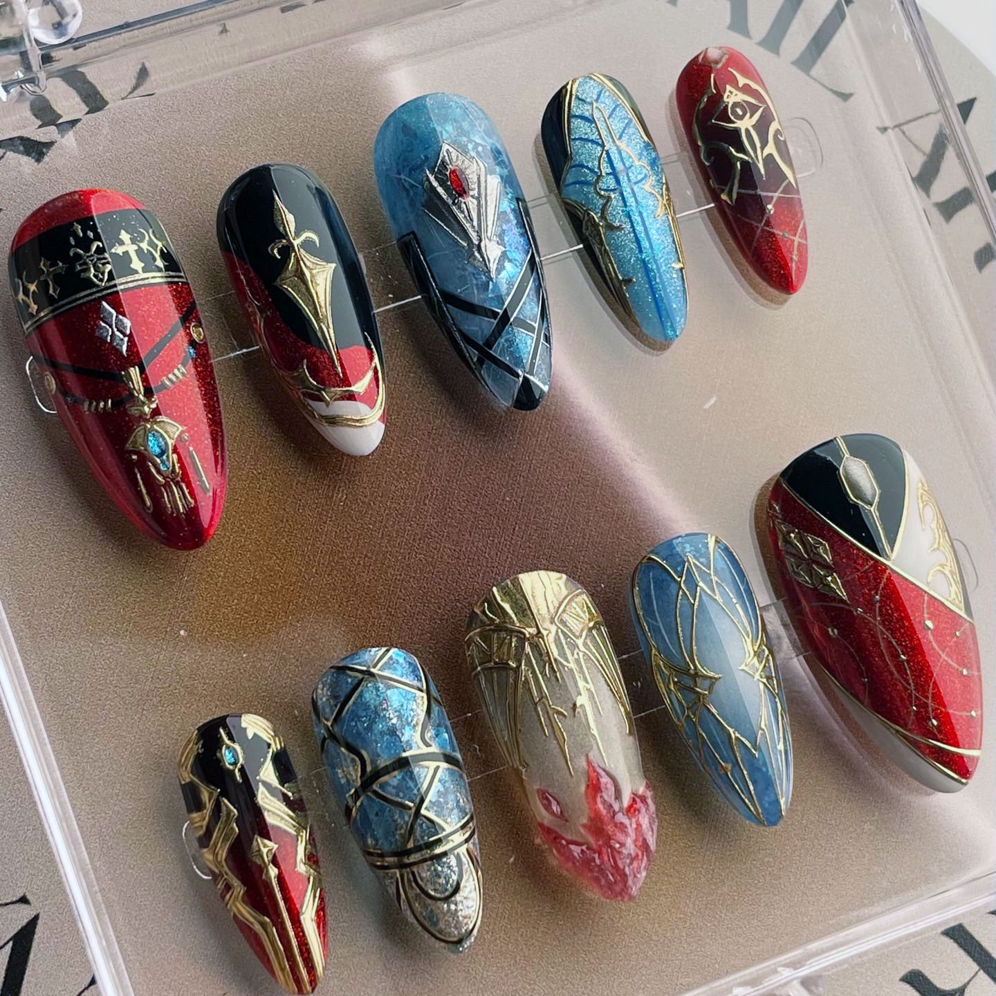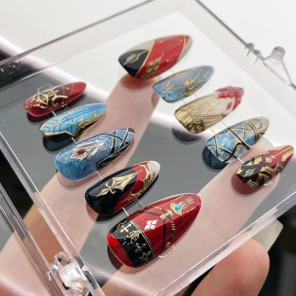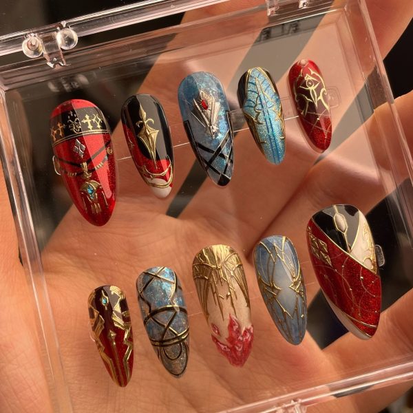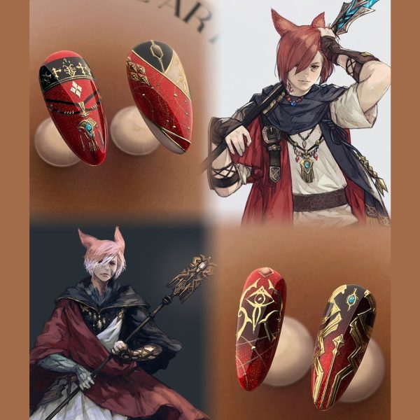 FF14 G’raha Tia press on nails|Final Fantasy XIV nails designs|handpainted art nails