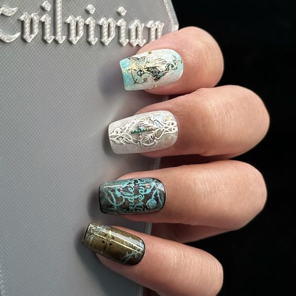 Handpainted Fake Nail|Long Stiletto Nails|Wheel of Fate|Impressive Nails|designer press on nails