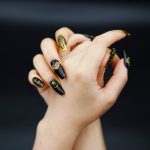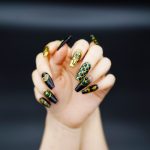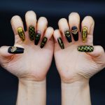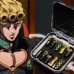 JoJo Giorno character press on nails|giogio anime nails|custom anime character nails|green and gold nails