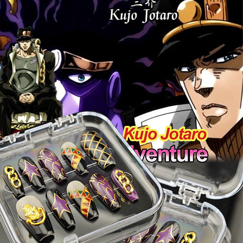 jojo Kujo Jotaro press on nails|handmade press on nails |long black nails|custom anime nails